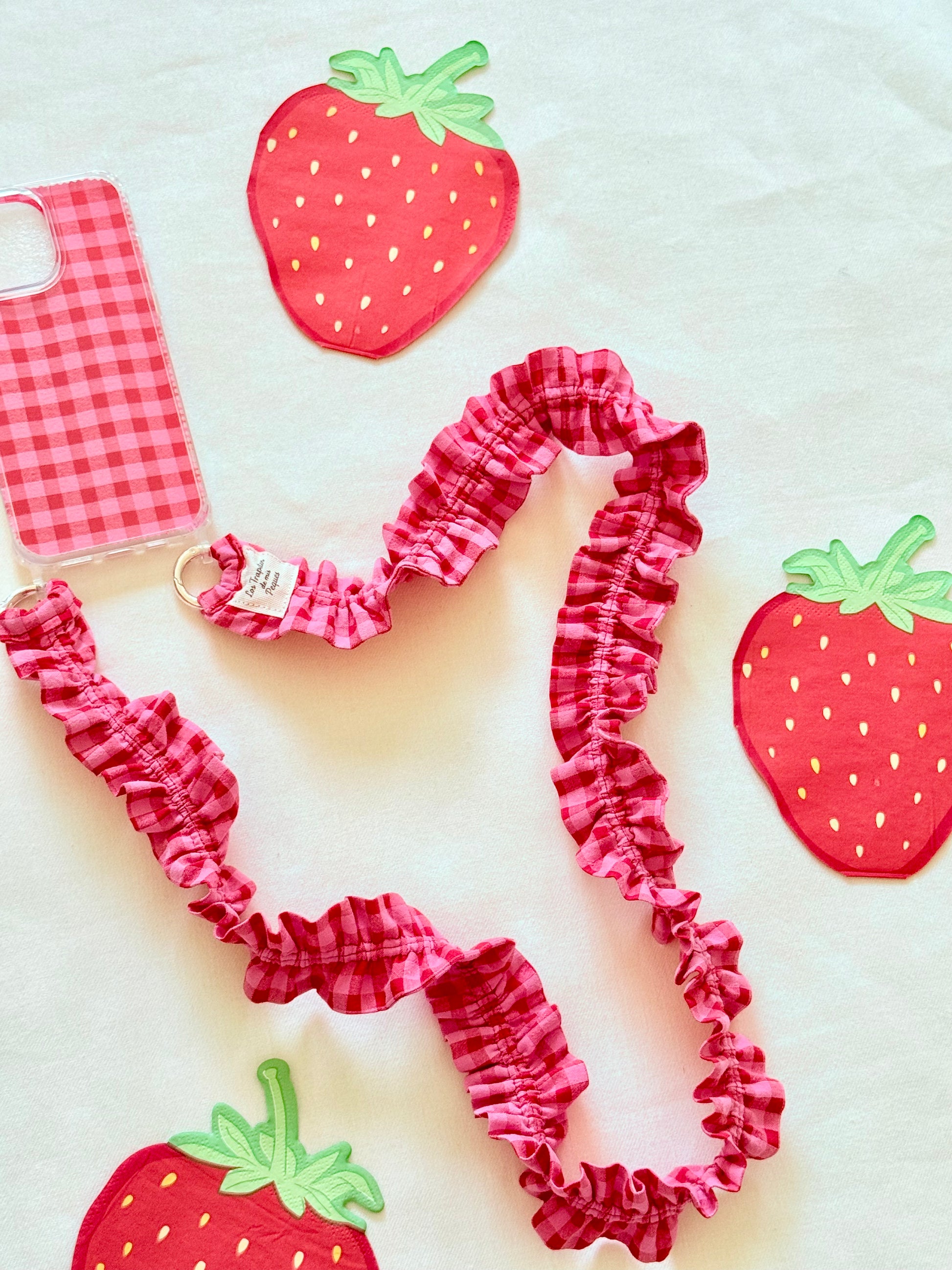 Conjunto Cuelga Movil Rizado Vichy Rojo y Rosa