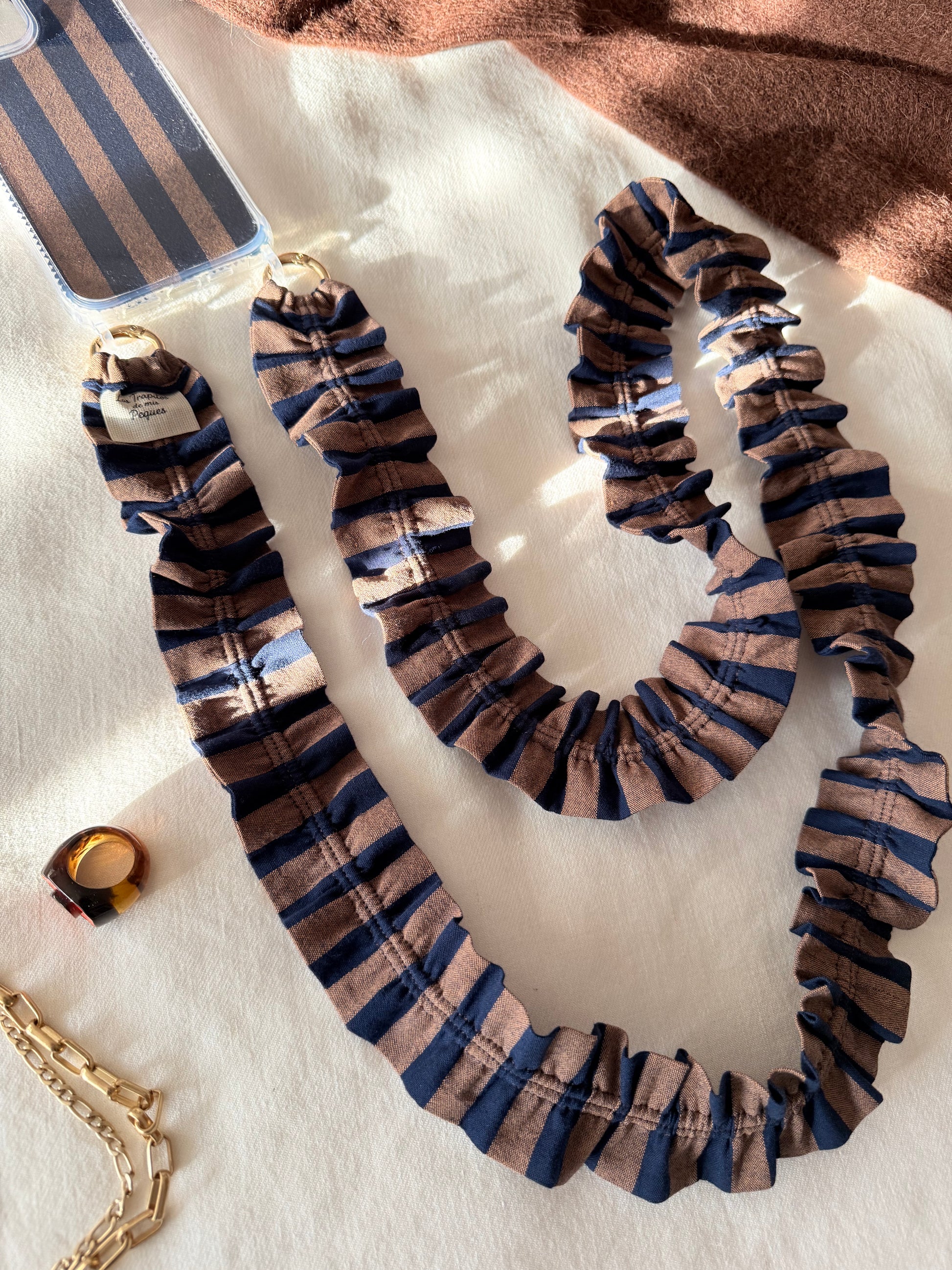 Conjunto Cuelga Movil Rizado Rayas Tostado y Marino